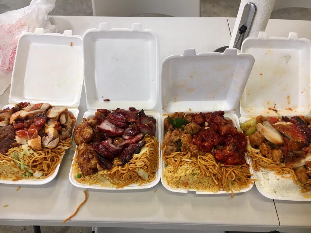 This place doesn't mess around. I ordered a two item entree and was in awe at the portions I was given as others have said. The sweet woman serving me just piled on the food, easily giving me a good three scoops of each entree. I had the Broccoli Beef and Mushroom Chicken along with half Chow Mein and half steamed rice all of which was very tasty. I hate that feeling of wanting to ask for a little bit more of something, here I was thinking okay please slow down, are you trying to kill me? The lid barely closed, I thought she was going to have to wrap a bungee cord around it!